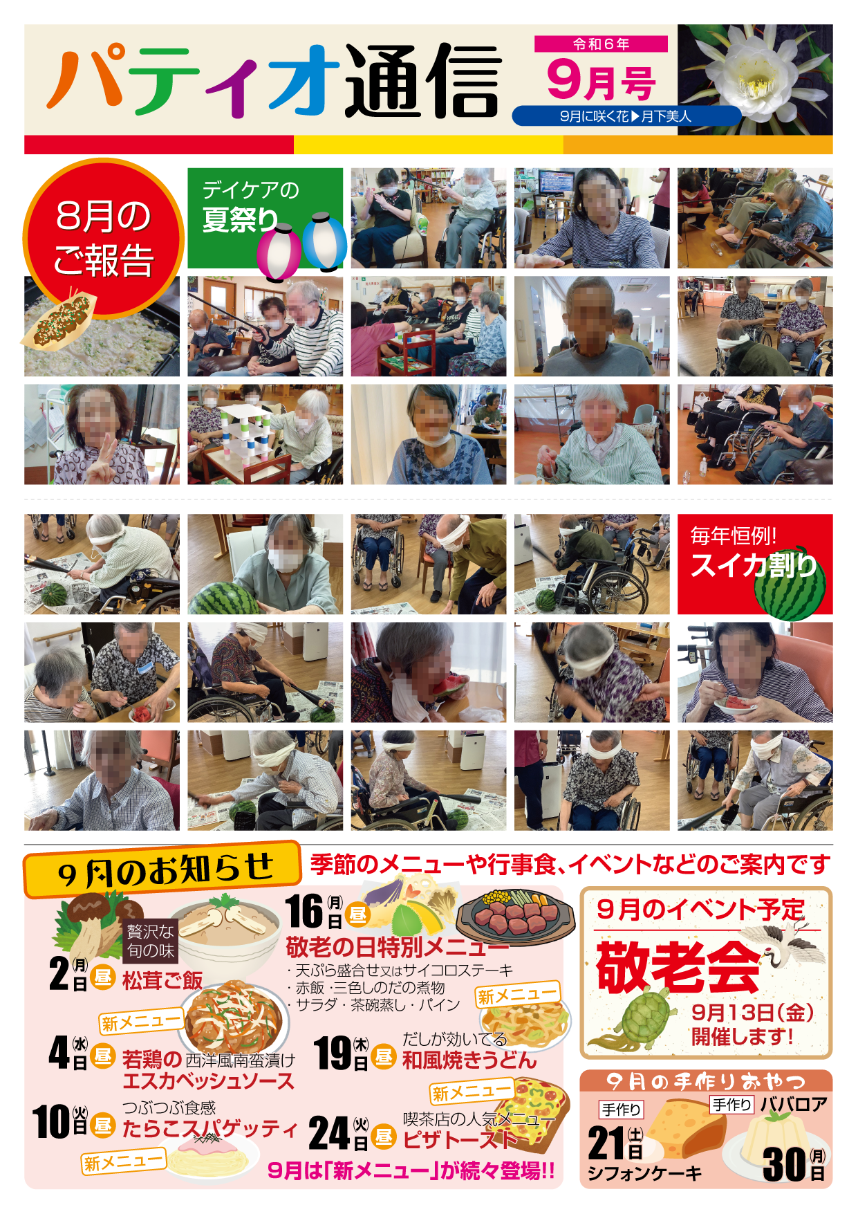 「パティオ通信」令和6年9月号 2024年09月04日 「パティオ通信」令和6年9月号を発行しました。 前のページ へ 次のページへ ページトップへ トップぺージ ◆「健」- 看護と介護 - ◆「動」- 機能の回復 - ◆「食」- 健康を維持 - ◆「こだわり」 入居費用の案内 ご入居までの流れ 施設の紹介 お楽しみ 併設施設 パティオ通信 アクセス リクルート ボランティアさん募集 お問い合わせ 〒471-0855 愛知県豊田市柿本町4丁目8番地 ●お問い合わせ・資料請求は TEL.0565-71-1165FAX.0565-71-1167 [併設施設] ○通所リハビリテーション ハートフルデイケア 0565-71-3871 ○訪問介護ステーション ラルガパティオ 0565-71-3873 ○眼科 柿本クリニック 0565-71-1212