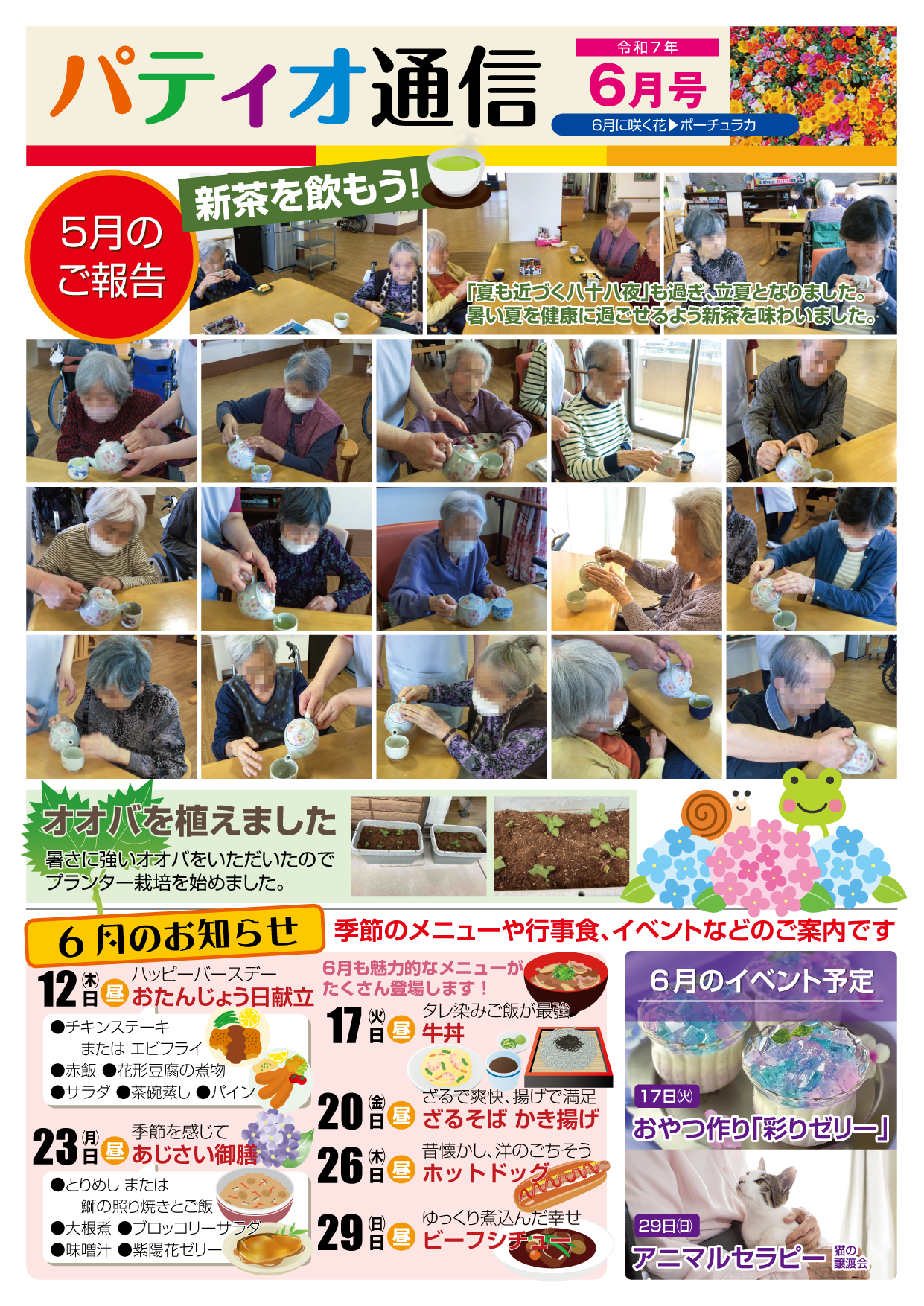 「パティオ通信」令和7年6月号 2025年06月02日 「パティオ通信」令和7年6月号を発行しました。 前のページ へ 次のページへ ページトップへ トップぺージ ◆「健」- 看護と介護 - ◆「動」- 機能の回復 - ◆「食」- 健康を維持 - ◆「こだわり」 入居費用の案内 ご入居までの流れ 施設の紹介 お楽しみ 併設施設 パティオ通信 アクセス リクルート ボランティアさん募集 お問い合わせ 〒471-0855 愛知県豊田市柿本町4丁目8番地 ●お問い合わせ・資料請求は TEL.0565-71-1165FAX.0565-71-1167 [併設施設] ○通所リハビリテーション ハートフルデイケア 0565-71-3871 ○訪問介護ステーション ラルガパティオ 0565-71-3873 ○眼科 柿本クリニック 0565-71-1212