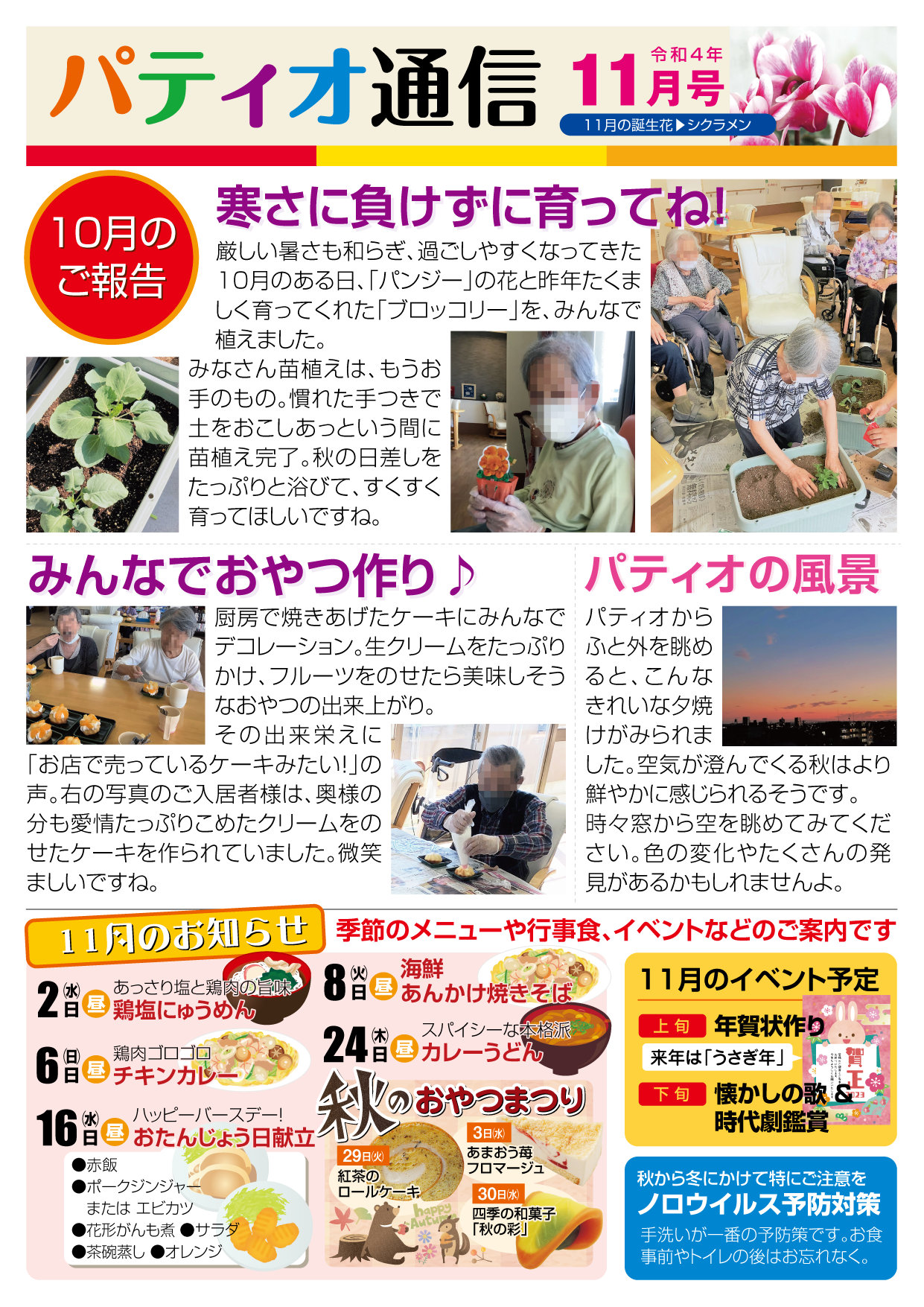 「パティオ通信」令和4年11月号 2022年11月02日 「パティオ通信」令和4年11月号を発行しました。 前のページ へ 次のページへ ページトップへ トップぺージ ◆「健」- 看護と介護 - ◆「動」- 機能の回復 - ◆「食」- 健康を維持 - ◆「こだわり」 入居費用の案内 ご入居までの流れ 施設の紹介 お楽しみ 併設施設 パティオ通信 アクセス リクルート ボランティアさん募集 お問い合わせ 〒471-0855 愛知県豊田市柿本町4丁目8番地 ●お問い合わせ・資料請求は TEL.0565-71-1165FAX.0565-71-1167 [併設施設] ○通所リハビリテーション ハートフルデイケア 0565-71-3871 ○訪問介護ステーション ラルガパティオ 0565-71-3873 ○眼科 柿本クリニック 0565-71-1212